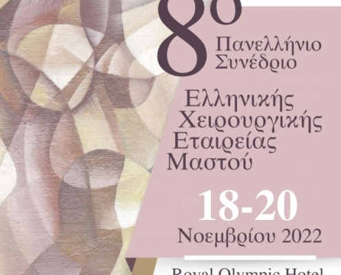 Η Ελληνική Χειρουργική Εταιρεία Μαστού διοργανώνει το 8ο Πανελλήνιο Συνέδριο στις 18-20 Νοεμβρίου 2022 στο ξενοδοχείο Royal Olympic Hotel.
