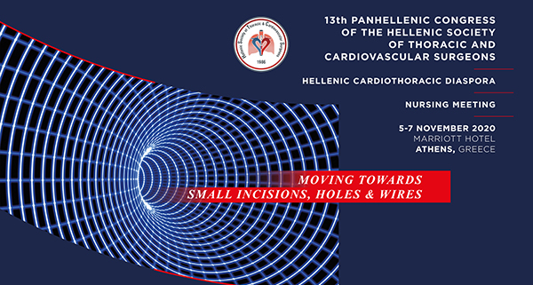 Η Ελληνική Εταιρεια Χειρουργων Θώρακος Καρδιάς διοργανώνει το 13ο Πανελλήνιο Συνέδριο με θέμα “Moving Towards Small Incisions and Wires” στις 5-7 Νοεμβρίου στο ξενοδοχείο Marriott, Αθήνα.